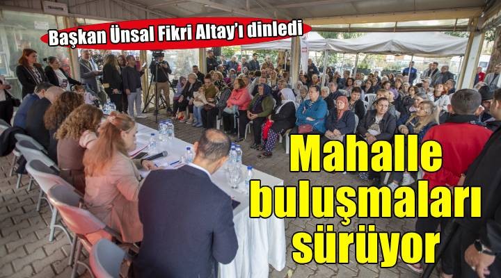 Programın devamında Fikri Altay Çay Bahçesi’nde gerçekleştirilen Vatandaş Buluşması’nda mahalle sakinleri temizlik, gerekli bakım ve onarım çalışmaları ile çevresel ihtiyaçlar başta olmak üzere çeşitli konularda görüşlerini paylaştı. Başkan Ünsal’a belediye başkan yardımcıları, birim müdürleri ve bürokratlar da eşlik etti. İletilen her konu ilgili birimlere aktarılarak en kısa sürede çözüme kavuşturmak üzere tek tek not alındı. Toplantıya katılan çocuklar ve gençler de kendi isteklerini ve ihtiyaçlarını dile getirme fırsatı buldu. Başkan Ünsal, her mahallenin sorunlarını yerinde dinlemeye devam ettiklerini belirterek birlikte yönetim vurgusu yaptı.