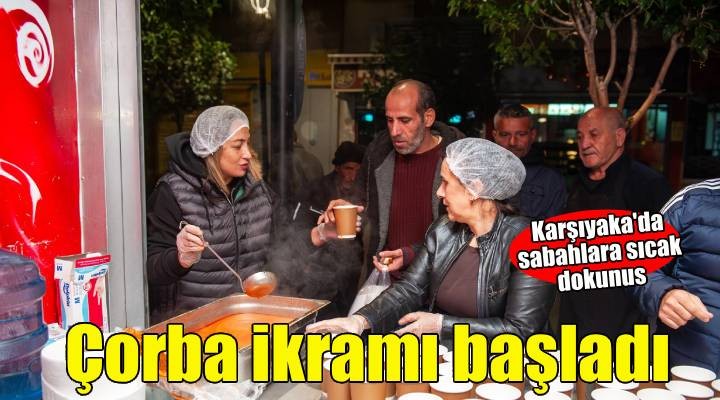 Hafta içi her gün 07.30 - 08.30 saatleri arasında yüzlerce kişiye sunulan çorba ikramı; 2 Aralık'ta Kadızade Zühtü Işıl Anıtı, 3 Aralık'ta Bostanlı İskele, 4 Aralık'ta Alaybey İZBAN, 5 Aralık’ta Karşıyaka İZBAN (Çarşı) önünde gerçekleştirilecek. Uygulama Mart ayı sonuna kadar devam ederken, haftalık programlar Karşıyaka Belediyesi’nin sosyal medya hesaplarından duyurulacak.