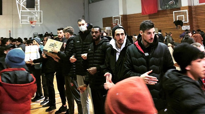 Mustafa Kemal Atatürk Karşıyaka Spor Salonu'ndaki yardım toplama seferberliğine Türkiye Sigorta Basketbol Süper Ligi'ndeki Pınar Karşıyaka'nın yerli ve yabancı tüm oyuncuları da koli taşıyarak katkı verirken, Büyükkarcı, 3 günde 100 kamyon ihtiyaç malzemesinin afet bölgesine gönderildiğini söyledi.