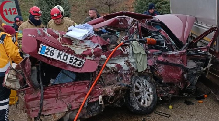 Şuayip Giren (25) yönetimindeki 26 KD 523 plakalı otomobil, Çanakkale-Bursa karayolunun Tophisar mevkiinde karşı yöndeki kavşakta duran ve dönmeyi bekleyen İsmail A. idaresindeki 55 AGY 266 plakalı kamyona çarptı.