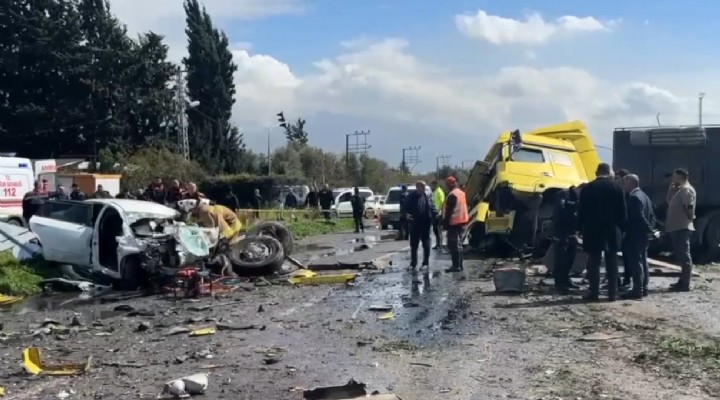 Hatay'ın Dörtyol ilçesinde, karşı şeride geçen TIR'ın çarptığı otomobildeki aynı aileden 6 kişi hayatını kaybetti, 1 kişi yaralandı.