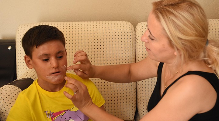 Karabağlar'da oturan Süheyla- Adnan Uzman çiftinin oğulları Kayra, halk arasında 'balık derisi' ya da 'balık pulu' olarak da bilinen iktiyozis hastalığıyla mücadele ediyor. Vücudunun çeşitli yerlerinde kanamalı yaralarla beraber şiddetli kaşıntıları olan Kayra'nın düzenli olarak doktorlar tarafından önerilen krem ve şampuanları kullanması gerekiyor. Kayra'nın yüzde 100 engelli raporunun 2 yıl önce iptal edilmesi üzerine önerilen krem ve ilaçları temin edemeyen ailesi, hayırseverlere yardım talebinde bulunmuştu. DHA'nın haberinin ardından Kayra'nın çağrısını duyan Türkiye'nin dört bir yanından birçok hayırsever, aileye kolilerce krem yardımı yaparak, destek verdi. Yaklaşık 7 ay boyunca krem sıkıntısı yaşamayacak ailenin yüzü güldü. Öte yandan 8 Ağustos Perşembe günü İzmir Dr. Behçet Uz Çocuk Hastalıkları ve Cerrahisi Eğitim ve Araştırma Hastanesi'nde rapor için heyete giren Kayra, ikinci kez sevindi. Doktorların Kayra için 'Özel gereksinimi vardır' raporu vermesinin ardından aile için yeniden ihtiyaç duyulan krem ve şampuanları temin etmenin yolu açıldı. Karardan mutluluk duyduklarını belirten anne Süheyla Uzman, "Çocuğumun bakıma ihtiyacı olduğunu her defasında söylemiştim. Sonunda bizim sesimiz duyuldu. Birkaç ay içinde ikinci güzel haberimizi aldık. Yapılan krem yardımıyla birlikte Kayra'nın yaraları da gelişme gösterdi. Çok mutluyuz" dedi.
