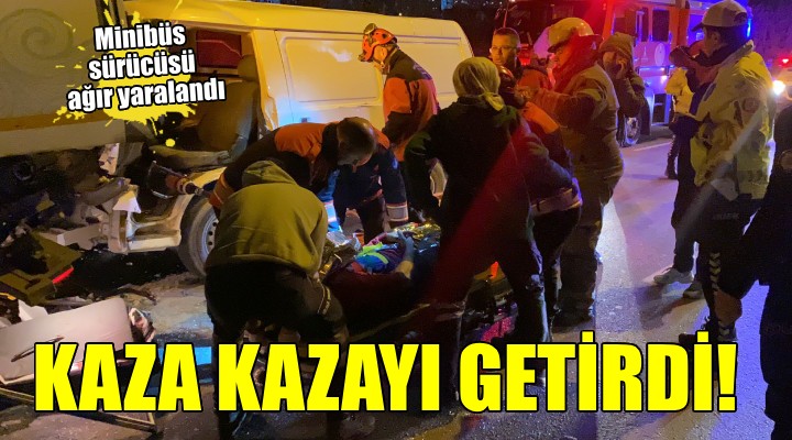 Kaza, saat 03.30 sıralarında Konak ilçesinde meydana geldi. İddiaya göre, saat 02.00 sıralarında Mürselpaşa Bulvarında bir otomobil maddi hasarlı kazaya karıştı. Bunun üzerine olay yerine A.S.(51) idaresinde bulunan 34 FYD 961 plakalı belediyeye ait yol temizleme aracı gönderildi. Temizleme aracı bulvarda çalışma yaptığı sırada, A.Ş.(37) kullandığı 35 AIM 698 plakalı kapalı kasa minibüs, temizleme aracına arkadan çarptı. Çarpmanın şiddetiyle sürücü, bulunduğu yerde sıkıştı. Kazayı gören diğer sürücüler, durumu sağlık, polis ve itfaiye ekiplerine bildirdi. İhbar üzerine olay yerine gelen itfaiye ekipleri, sürücü A.Ş.'yi sıkıştığı yerden yaralı olarak kurtararak sağlık ekiplerine teslim etti. Sağlık ekipleri tarafında olay yerinde ilk müdahalesi yapılan yaralı sürücü, ambulansla Tepecik Eğitim ve Araştırma Hastanesi'ne kaldırıldı. Sürücünün durumunun ağır olduğu öğrenilirken, kazayla ilgili inceleme başlatıldı.