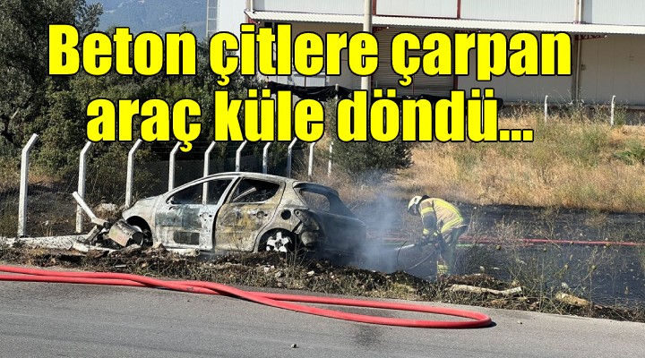 Yol kenarındaki beton çitlere çarparak durabilen otomobil, yanmaya başladı. Sürücü otomobilden inerken, yangın rüzgarın etkisiyle otluk alana sıçradı.