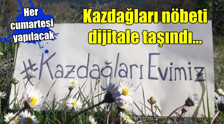 Dijital ortama taşınan eylemin ilk etiketi ise #KazdağlarıEvimiz oldu. Aktivistler, yaptıkları paylaşımlarda “Kazdağları’ndaki virüs maden şirketleridir. Kazdağları’nda 155 şirkete 279 maden ruhsatı verildi!” ifadelerini kullandı. Ormansızlaşmanın salgın hastalıkların yayılması üzerindeki etkisine dikkat çekilen paylaşımlarda “Ormansızlaştırma, hayvanlardan insanlara geçen hastalıkların artış sebeplerinden biridir. Madenler için binlerce hektar ormanlık alan yok ediliyor!” denildi.