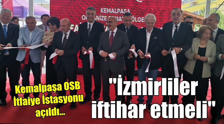 İzmir Valisi Yavuz Selim Köşger ise "Emeği geçenlere, başta Büyükşehir Belediyesi olmak üzere teşekkür ediyorum. 14.7 milyon TL harcanarak bu fiziki yerleşke tamamlandı. Çok önemli bir hizmet. Kemalpaşa OSB, 13 milyon metrekare alanda yaklaşık 26 milyon 500 kişiye istihdam sağlayan, 500 milyon dolar net dış ticaret fazlası yaratan, yatırımlarla 50 bin kişiye istihdam oluşturacak İzmir'in önemli kuruluşlarından birisi. Burada itfaiye tesisinin hizmete girecek olması çok önemli. Allah'tan kazasız belasız afetsiz günler diliyoruz. Allah ihtiyaç buyurmasın. Hazırlıklı olunması lazım" dedi.