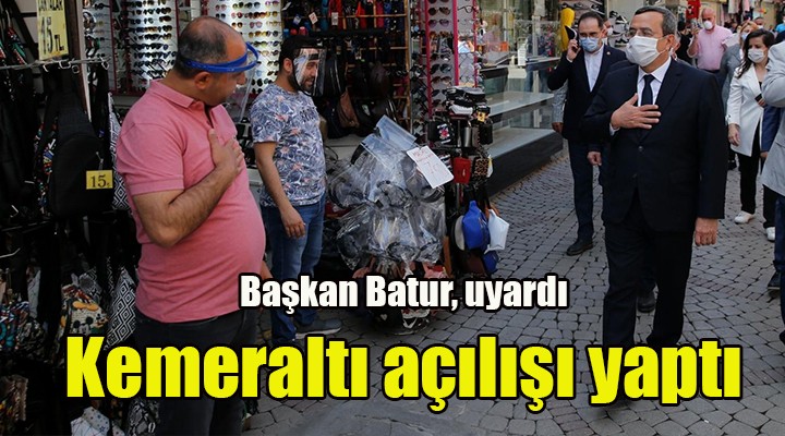 Konak Belediye Başkanı Abdül Batur, CHP İzmir Milletvekili Ednan Arslan, CHP Konak İlçe Başkanı Çağrı Gruşçu, İzmir Esnaf ve Sanatkarlar Odası Başkanı Zekeriya Mutlu, Tarihi Kemeraltı Esnaf Derneği Başkanı Semih Girgin ve belediye meclis üyeleriyle birlikte Kemeraltı Çarşısı’na giderek uzun bir aranda sonra dükkanlarını açan Çarşı esnafını ziyaret etti. Covid-19 salgını için alınan önlemler kapsamında uzun süredir kapalı olan Kemerlatı Çarşısı ile berber ve kuaförler 11 Mayıs tarihinde yeniden çalışmaya başladı. Çarşı esnafını ilk iş ünlerinde yalnız bırakmayan Başkan Batur, yeni dönem için esnafa hayırlı olsun dileklerini iletti.
