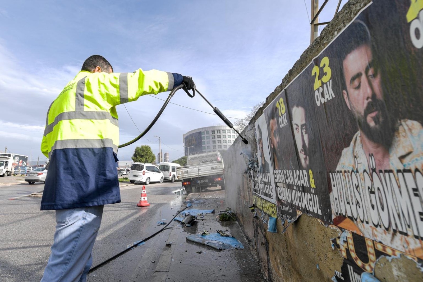 İzmir Büyükşehir Belediyesi Zabıta Dairesi Başkanlığı, kent estetiğini korumak ve kamusal alanların izinsiz kullanımını önlemek amacıyla izinsiz ilan ve reklamlara yönelik denetim ve kaldırma çalışmalarını sürdürüyor. Ekipler, belediye sınırları içinde elektrik direkleri, duvarlar, üst geçitler ve kamuya ait alanlara izinsiz asılan afişleri tek tek söküyor. İzmir Büyükşehir Belediyesi İlan ve Reklam Yönetmeliği’ne aykırı afişler kaldırılırken, gerekli temizlik çalışmaları da eş zamanlı olarak gerçekleştiriliyor. Ayrıca sorumlular hakkında İzmir Büyükşehir Belediyesi Emir ve Yasaklar Yönetmeliği ile 5326 sayılı Kabahatler Kanunu kapsamında idari yaptırımlar uygulanıyor. İzinsiz uygulamalar nedeniyle oluşan söküm ve temizlik masrafları ise ilgililerden tahsil ediliyor.