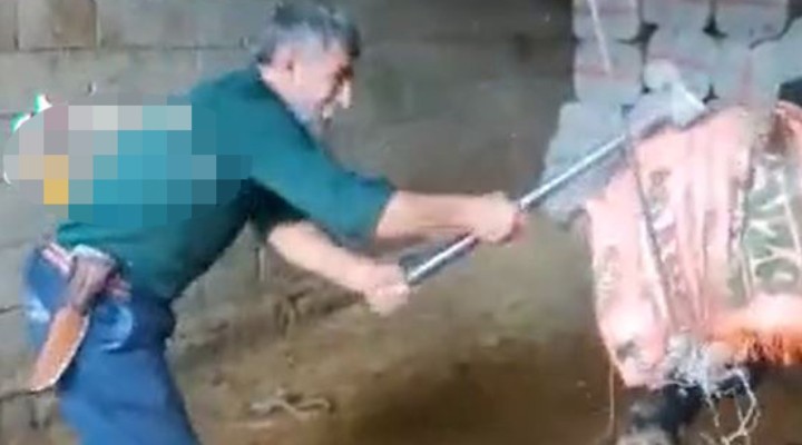 Kızıltepe'de bir kişi, ahırda kesimini yapacağı gözlerini bağladığı boğayı başına defalarca balyoz vurup, öldürdü. Görüntüler ortaya çıkınca, sosyal medyada büyük tepki çekti.