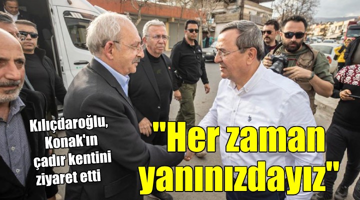 Yirmi gündür depremzede vatandaşların hizmetinde olan Konak Belediyesi çadır kentinde yaşamlarını sürdüren vatandaşlar, 13. Cumhurbaşkanı Adayı ve CHP Genel Başkanı Kemal Kılıçdaroğlu ve beraberindeki heyeti heyecanla karşıladı. Tek tek vatandaşlarla sohbet eden ve geçmiş olsun dileklerini ileten Kılıçdaroğlu, “Yanınızdayız, felaketi birlikte, dayanışma içinde atlatacağız” mesajı verdi. Çadır kentin yemekhanesinde vatandaşlarla birlikte çay içip sohbet eden Kemal Kılıçdaroğlu, vatandaşlardan deprem anında ve sonrasında yaşananları dinledi, ihtiyaç ve isteklerini sordu. 13. Cumhurbaşkanı Adayı ve CHP Genel Başkanı Kemal Kılıçdaroğlu, “Demokratik, çağdaş ve güzel bir Türkiye’yi hep birlikte kuracağız” dedi. Vatandaşlar da Kılıçdaroğlu’na teşekkür ederek, “İyi ki varsınız, yanımızda olduğunuzu her zaman hissettik, Konak Belediyesi ve Konak Belediye Başkanı Abdül Batur bizi hiç yalnız bırakmadı. Her ihtiyacımız karşılanıyor, çocuklarımız mutlu. Allah sizleri başımızdan eksik etmesin” dedi.