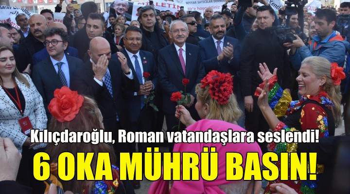 Türkiye Cumhuriyeti tarihinde ilk kez bir Roman milletvekilini CHP'nin meclise getirdiğini söyleyen Kılıçdaroğlu, "CHP toplumun her kesimiyle ilgilenen, her kesimin sorunlarına çözüm üreten bir parti demektir. Sizden istediğim sandığa gidince 6 okun altına mührü basmaktır. Mahkum ailelerin durumunu da biliyorum, sorunlarınızı da biliyorum. Haksız yere tutuklananları da biliyorum, bu ülkede adaletin olmadığını da biliyorum. Bay Kemal'in kavgası Türkiye Cumhuriyeti Devleti'ne adaleti getirme kavgasıdır. Adaleti getirmek için sizden destek istiyorum. Ülkenin her karış toprağına adaleti getireceğiz ve birlikte mücadele edeceğiz. Mücadelemiz hiçbir çocuğun yatağa aç girmediği Türkiye mücadelesidir. Aile destekleri sigortası ile her aileye asgari bir gelir getirme mücadelesidir. Sizden tek isteğim yanımda olun ve birlikte yürüyelim. Birlikte Türkiye'yi aydınlığa çıkaralım" diye konuştu.