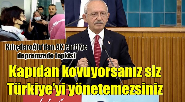 AK Parti İzmir İl Binası önünde yaşananlara değinen Kılıçdaroğlu, "AK Partiye gittiniz sizi kapıdan kovdular. Onları buradan kınıyorum! Deprem mağdurlarını dinleyin bir. Siz iktidarsınız… Eleştiriler varsa dinleyin. Siz bunları yapmıyor ve derdini anlatmak isteyenleri polis çağırıp kapıdan kovuyorsanız siz İzmir'i de Türkiye'yi de yönetemezsiniz. Bizim isteğimiz size düşük faizli yüksek süreli kredi vermesidir" dedi.