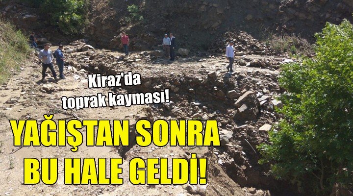 Taşlıyatak, Tombullar, Karabolu mahallelerinin bazı noktalarında meydana gelen toprak kayması nedeniyle, İzmir Büyükşehir Belediyesi Kiraz Yerel Hizmetler Koordinatörü Ümit Kazak bölgeye giderek incelemelerde bulundu.
