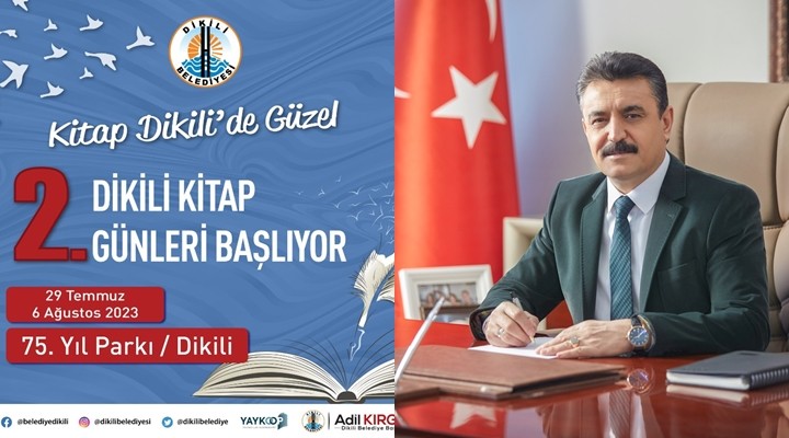 Kent tarihinde bir ilk olarak geçen yıl başlattığı Dikili Kitap Günleri’ne ikinci kez ev sahipliği yapmanın mutluluğunu yaşayan Dikili Belediye Başkanı Adil Kırgöz “Dikili Belediyesi olarak Yayıncılar Kooperatifi (YAYKOOP) iş birliği ile 29 Temmuz -6 Ağustos tarihlerinde gerçekleştireceğimiz 2. Dikili Kitap Günleri’nin temasını ‘100. Yılında Cumhuriyet’ olarak belirledik. 9 gün boyunca eşsiz günbatımı eşliğinde Dikili sokaklarında denizden gelen meltem rüzgarının iyot kokusuyla beraber kitap kokularının yayılacağı etkinliğimizde ülkemizin değerli sanatçılarını, aydınlarını, siyaset insanlarını kitapseverler ile bir araya getiriyoruz. Ulu Önderimiz Gazi Mustafa Kemal Atatürk’ün bizlere armağan ve emanet ettiği Cumhuriyetimizin 100. yılında düzenleyeceğimiz 2. Dikili Kitap Günleri’ne tüm halkımızı davet ediyoruz.” dedi.