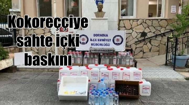 Bornova İlçe Emniyet Müdürlüğü ekipleri, ilçede sahte etil alkol ve sahte içkinin satışını önlemek amacıyla yaptıkları çalışma kapsamında, bir kokoreççi dükkanına baskın düzenledi. İş yerinde yapılan aramada, yaklaşık 230 litre etil alkol ile 20 litre sahte içki, etiket, alkol aroması, alkol yapım kiti, anason yağı, içki yapımında kullanılan malzemeler ve çok sayıda içki şişesi ele geçirildi. İş yeri sahibi D.Ç. gözaltına alındı.