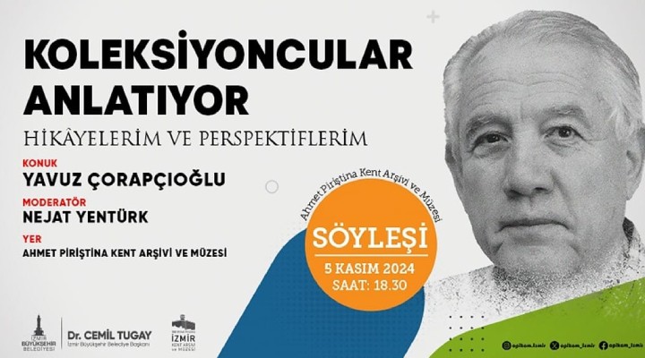 Ahmet Piriştina Kent Arşivi ve Müzesi, "Koleksiyoncular Anlatıyor: Hikâyelerim ve Perspektiflerim" başlığıyla yeni bir söyleşi dizisi başlatıyor. Söyleşi dizisinin ilk konuğu ise Koleksiyoncu Prof. Dr. Yavuz Çorapçıoğlu olacak. İzmir Büyükşehir Belediyesi Kültür ve Sanat Dairesi Başkanlığı’na bağlı Kent Arşivi ve Müzeler Şube Müdürlüğü tarafından gerçekleştirilecek söyleşi, Koleksiyoncu Nejat Yentürk’ün moderatörlüğünde 5 Kasım Salı günü, saat 18.30’da Ahmet Piriştina Kent Arşivi ve Müzesi’nde düzenlenecek.