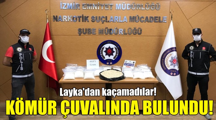 Narkotik polisi, yürüttüğü teknik ve fiziki takibin ardından belirlenen adrese baskın düzenledi. Kokuya duyarlı dedektör köpek "Layka"nın da katıldığı baskında, köpeğin kömür çuvallarının bulunduğu bölgede tepki vermesi üzerine yapılan aramada 40 kilo 930 gram metamfetamin ele geçirildi.