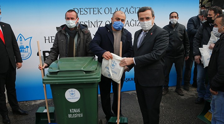 Konak Belediyesi ilçede çalışan apartman görevlilerine ulaştırılacak konteyner, temizlik setleri ve hijyen paketlerinin dağıtımına Temizlik İşleri Müdürlüğü atölyelerinde düzenlenen törenle başladı. Törene Konak Belediye Başkanı Abdül Batur, CHP Konak İlçe Başkanı Çağrı Gruşçu, Güzelyalı, Mimar Sinan, Mehmet Ali Akman Mahalle Muhtarları ve apartman görevlileri katıldı.