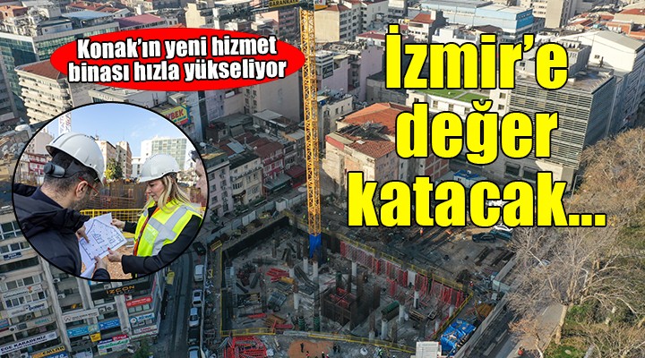 Konak Belediyesi’nin eski hizmet binası, 30 Ekim 2020 yılında meydana gelen depremde hasar aldığı için kontrollü bir şekilde yıkımı gerçekleştirilmişti. Konak Belediyesi, bu alanda daha işlevsel ve görselliğiyle kente değer katacak yeni hizmet binası yapmak için harekete geçti. Çalışmalar kapsamında bugüne kadar, diyafram duvarları ve fore kazık sistemiyle güçlendirilen zemine 1,5 metre yüksekliğinde radye temel betonu atıldı. Yalıtım ve dış perde imalatları tamamlanan inşaatta eksi ikinci kat betonarme imalatlar da bitirilmiş olup, 10 gün içerisinde eksi birinci kat kolon, perde, tabliye betonarme imalatlar tamamlanarak giriş katı seviyesine ulaşılmış olacak.