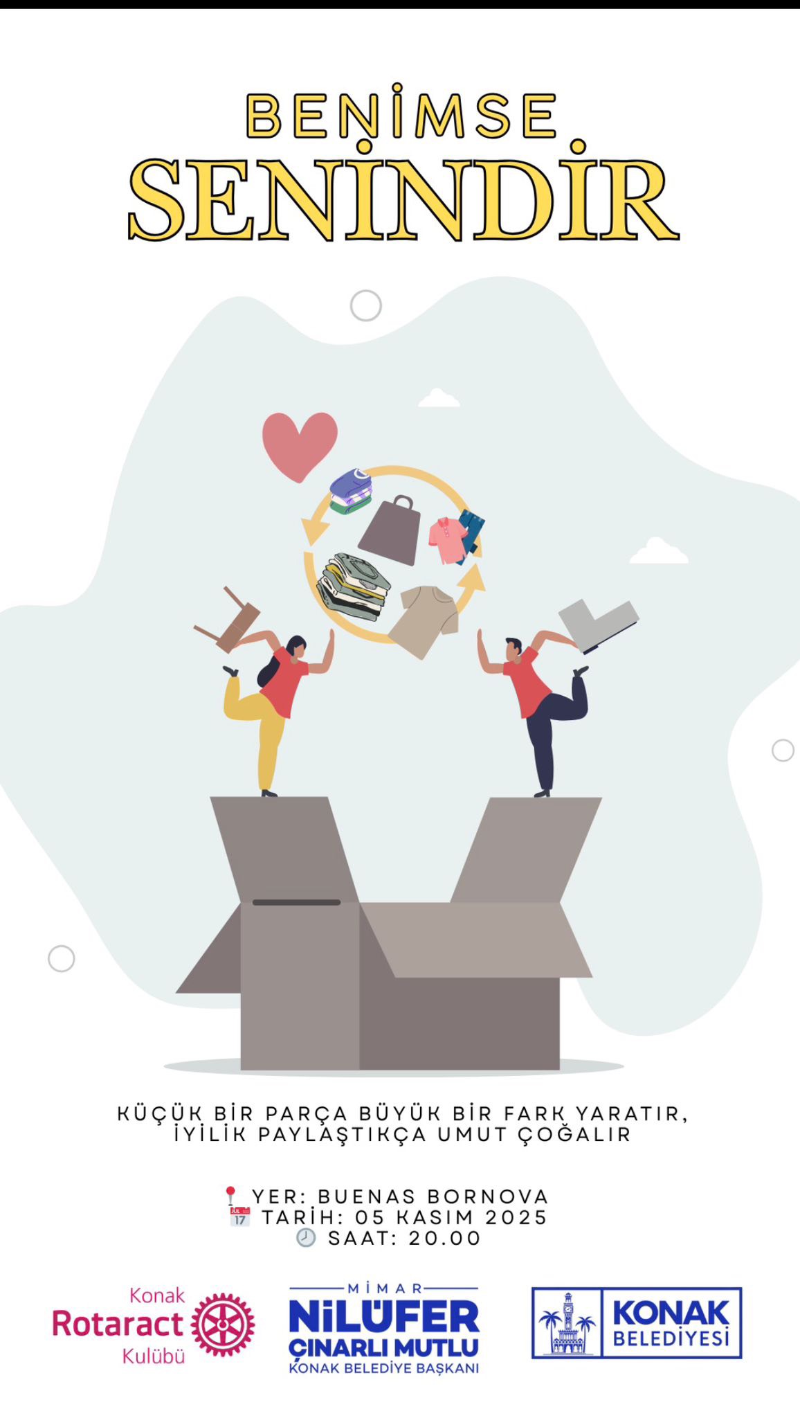 Konak Belediyesi’nin koordinasyonu ve Konak Rotaract Kulübü’nün gönüllü desteğiyle ilerleyen proje, kent genelinde sosyal dayanışmanın artmasına katkı sağlıyor. Proje temsilcileri, “Benimse Senindir”in önümüzdeki dönemlerde daha fazla kişiye ulaşmasını hedeflediklerini belirterek tüm vatandaşları dayanışma ruhuna ortak olmaya davet etti.