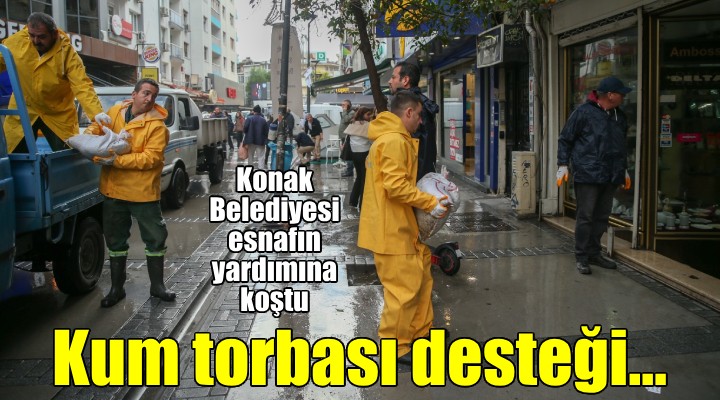 Konak Belediye Başkanı Abdül Batur, İzmir’de günlerdir etkili olan sağanak yağış ve fırtına sebebiyle esnafın daha fazla mağduriyet yaşaması için belediye ekiplerini seferber etti. Özellikle Alsancak bölgesinde deniz seviyesinin de yükselmesiyle işyerleri su alan esnafa hem temizlik hem işgaliye desteği sağlayan Konak Belediyesi, yinelenen sel, su baskını, yıldırım, fırtına uyarısının ardından esnafa kum torbası dağıttı. Kordon ile paralel cadde ve sokakları başta olmak üzere bölgedeki esnafa 1000’in üzerinde kum torbası verildi.