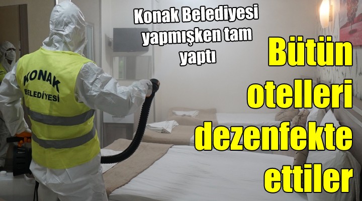 Konak Belediye Başkanı Abdül Batur, İzmir Otelciler Odası Başkanı Mehmet Gönen’in dile getirdiği otel ve pansiyon işletmecilerinin dezenfeksiyon hizmeti talepleri üzerine, ilçedeki tüm otel ve pansiyonların dezenfekte edilmesi için talimat verdi. Talimat üzerine belediyenin Temizlik İşleri Müdürlüğüne bağlı dezenfeksiyon ekipleri, Basmane’deki Oteller Sokağından başlayarak kısa zamanda ilçede talep eden tüm otel ve pansiyonlar dezenfekte etti. Otelcilerden Batur’a teşekkür geldi.