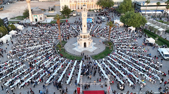 İzmir Büyükşehir Belediye Başkanı Tunç Soyer, Millet İttifakı’nın Kadir Gecesi'nde Konak Meydanı’nda düzenlediği iftar programına katıldı. İzmir’in sembolü Saat Kulesi’nin çevresinde 5 binin üzerinde davetli dualarla oruç açtı. İftara Başkan Tunç Soyer’in yanı sıra CHP Genel Başkan Yardımcısı ve milletvekili adayı Yüksel Taşkın, Millet İttifakı’nın il başkanları, Millet İttifakı’nın milletvekilleri ve milletvekili adayları, ilçe belediye başkanları, siyasi partilerin ve sivil toplum kuruluşlarının temsilcileri de katıldı.