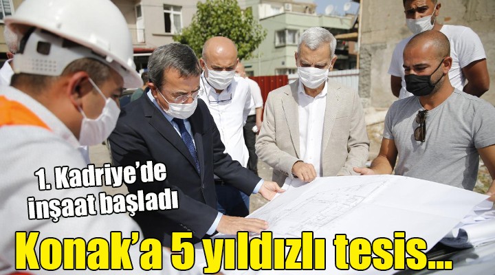 1. Kadriye’de beş yıldızlı bir tesis kurmaya hazırlanan Konak Belediyesi, ilk kazmayı vurarak inşaatı başlattı. Temel atma töreni için geri sayımın başladığı tesisin 500 günde tamamlanacağını açıklayan Konak Belediye Başkanı Abdül Batur, ilçede ardı ardına yapılacak temel atma törenlerini müjdeledi. Göreve geldiği ilk altı aylık dönemde Gültepe planlarını tamamlayan, Beştepeler planlarını da son aşamaya getiren Konak Belediye Başkanı Abdül Batur, kentsel dönüşümün yanı sıra ilçenin sosyal dönüşümünü sağlayacak adımlarını da hızlandırdı. Toros’ta inşaatını tamamladığı çok amaçlı sosyal tesisin açılışına hazırlanan Batur, bu merkezin bir benzerini kuracağı 1. Kadriye’de de inşaatı başlattı. Konak Belediyesi ekipleri, inşaat alanında ilk kazmayı vurdu.