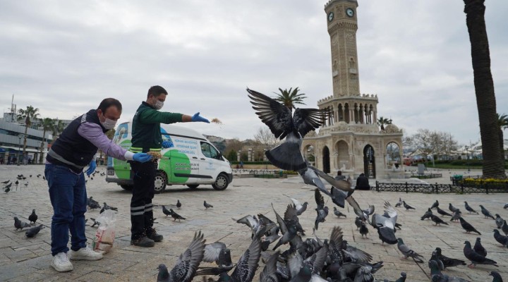 Konak Belediyesi veteriner ekipleri, özellikle pek çok esnafın kepenk indirdiği Kemeraltı Çarşısı, Gıda Çarşısı, sanayi siteleri gibi yerlerde yaşayan can dostlara mama bırakıyor. Dağıtım, ilçe genelindeki mahallelerde, sokak hayvanlarının toplu yaşadığı yerlerde de titizlikle sürdürülüyor. Vatandaşlara seslenerek, ‘evde kal’ çağrısını yinelen Konak Belediye Başkanı Abdül Batur, “Özellikle can dostlarını sahiplenen, onları düzenli olarak besleyen hemşehrilerimiz endişelenmesin: Sokaktaki can dostlarımızı bu sıkıntılı süreçte ihmal etmeyeceğiz. Yeter ki siz evde kalın; onlar bize emanet. Onları bu zor günlerde aç bırakmayız. Konak Meydanı’nın simgesi olan güvercinlerimizi de unutmuyoruz. Ekiplerimiz düzenli olarak güvercinlerimizi de besliyor” diye konuştu.