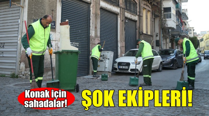 Konak Belediyesi’nin daha temiz, daha yaşanır bir kent için sürdürdüğü uygulamalar kapsamında Temizlik İşleri Müdürlüğüne bağlı Şok Ekipler, yirmi yedişer kişiden oluşa iki ayrı ekiple Konak’ın sokaklarında detaylı temizlik harekatı başlattı. Yaşanan yoğunluk ve sirkülasyon sonucu gün içinde nüfusun bir buçuk milyona ulaştığı, İzmir’in kalbi konumundaki Konak’ta, rutin genel temizliğe ek olarak Şok Ekipler de var gücüyle çalışıyor. Düzenli aralıklarla tekrarlanan ve Mehmet Ali Akman, Güzelyalı, Göztepe, Çankaya, Muratreis ve Mithatpaşa Mahalleleriyle başlayan uygulama ilçenin 112 mahallesinde de yapılacak. İki ekip halinde her gün farklı iki bölgede temizlik çalışması yapan Şok Ekiplerin çalışmaları belirli aralıklarla uygulanmaya devam edecek.