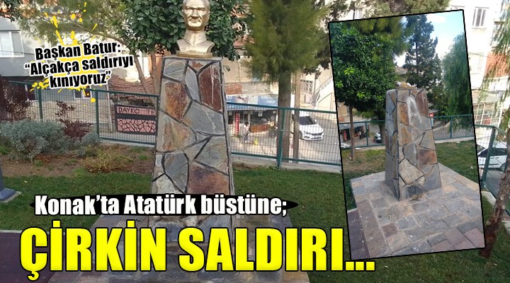 Konak Belediye Başkanı Abdül Batur, Ferahlı Mahallesi’nde geçen yıl tamamen yenilenerek halkın hizmetine açtıkları Ferahlı Parkı’nda bulunan Atatürk büstüne yapılan çirkin saldırıyı kınadı. Atatürk büstünün tamamen parçalandığını, kaidenin üzerine bölücü terör örgütünün ve sözde liderinin isminin yazıldığını belirten Batur, “Bu alçakça saldırıyı kınıyoruz. Biz Konak Belediyesi olarak, bu hain saldırıyla ilgili şikâyetlerimizi adli mercilere ilettik. Güvenlik güçlerimizin de bu hainleri bir an önce bulacağına inanıyoruz” diye konuştu.