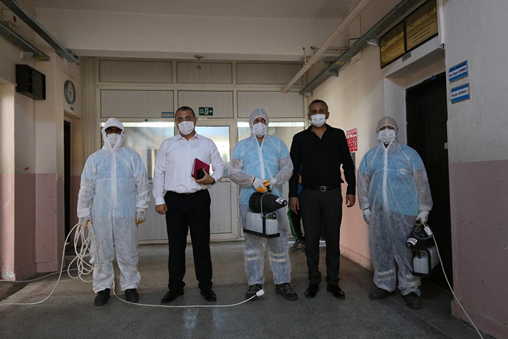 Dezenfekte çalışmalarının ilçe genelinde sürdürüldüğüne dikkat çeken Başkan Batur, “Bu hafta sonu önemli bir sınava girecek öğrencilerimiz ile velilerinin yaşadığı koronavirüs endişesini, okullarımızı dezenfekte ederek bir ölçü de olsa gidermek istedik. Çocuklar gözbebeğimiz, sağlıkları önceliğimiz. Halk sağlığını korumaya dönük dezenfeksiyon çalışmalarını bugüne kadar nasıl yürüttüysek, çocuklarımız için de öyle çalışmaya devam ediyoruz” dedi. Batur, hafta sonu sınava girecek sekizinci sınıf öğrencilerine başarılar da diledi.