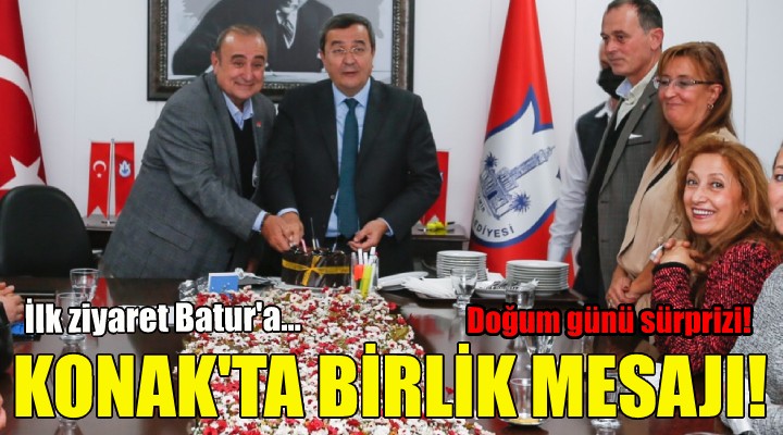 Konak Belediye Başkanı Abdül Batur’un da doğum gününü kutlama fırsatı bulan CHP Konak İlçe Örgütü, Başkan Batur’a doğum günü pastası ile sürpriz yaptı. Doğum günü pastasını kesen Başkan Batur, Cumhuriyet Halk Partisi’nin iktidarını diledi.