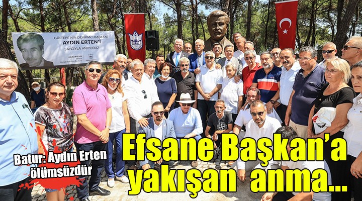 Gültepe’de halkın yararına yaptığı işlerle ve unutulmaz kişiliğiyle efsaneleşen dönemin Gültepe Belediye Başkanı Aydın Erten, ölümünün 22’nci yılında da unutulmadı. Gelenek olduğu üzere, Aydın Erten’in Gültepe Toros Mezarlığı’ndaki kabri başında yapılan anma töreninin ardından, Konak Belediyesi’nin Çınartepe Aydın Erten Rekreasyon Alanı’nda Efsane Başkan’ın anısını ölümsüzleştiren büst açılışına geçildi. Aydın Erten’in dostlarının ve sevenlerinin bir araya geldiği törenlere Konak Belediye Başkanı Abdül Batur başta olmak üzere, İzmir Büyükşehir Belediyesi Başkan Vekili Mustafa Özuslu, Cumhuriyet Halk Partisi (CHP) İzmir Milletvekilleri Tacettin Bayır, Kani Beko, Atila Sertel, CHP 24. dönem İzmir Milletvekili Musa Çam, CHP İzmir İl yöneticileri, CHP Konak İlçe Başkanı Akın Küçükoğullarından ve ilçe yöneticileri, CHP Karabağlar ilçe Başkanı Mehmet Türkbay, Konak Belediyesi Meclis Üyeleri, İzmir 68’liler Platformu Başkanı Gazeteci Okan Yüksel ve Yönetim Kurulu Üyesi Nail Dağdelen, platform üyeleri, sivil toplum ve demokratik kitle örgütleri temsilcileri, muhtarlar ve Gültepeliler katıldı.
