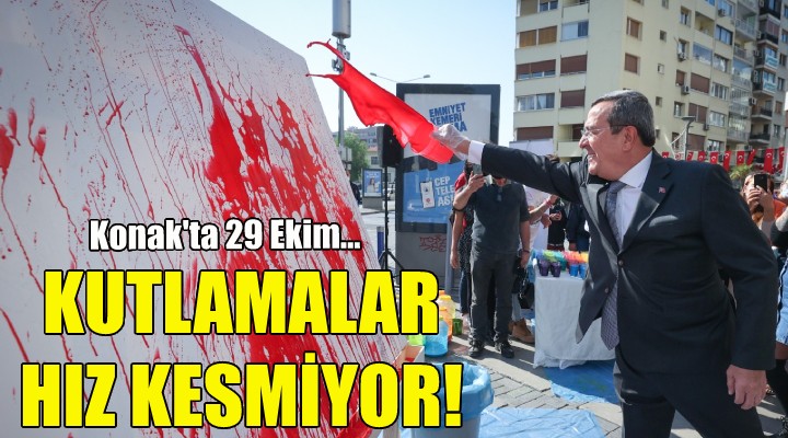 Cumhuriyet Bayramı haftası etkinliklerinin ikinci günü ise Kıbrıs Şehitleri Caddesi’nde düzenlenen “Cumhuriyetin Resmini Birlikte Yapıyoruz” etkinliğiyle başladı. İzmirlilerin büyük ilgi gösterdiği etkinlikte cadde girişine yerleştirilen dev tuval üzerine renkli boyalar dökülerek Türkiye Cumhuriyeti’nin kuruluşuna dair sürpriz bir fotoğraf ve Atatürk silueti ortaya çıkarıldı. Tuvale ilk boyayı Konak Belediye Başkanı Abdül Batur uygularken, caddeden geçen vatandaşlar da rengarenk boyalarla etkinliğe katıldı.