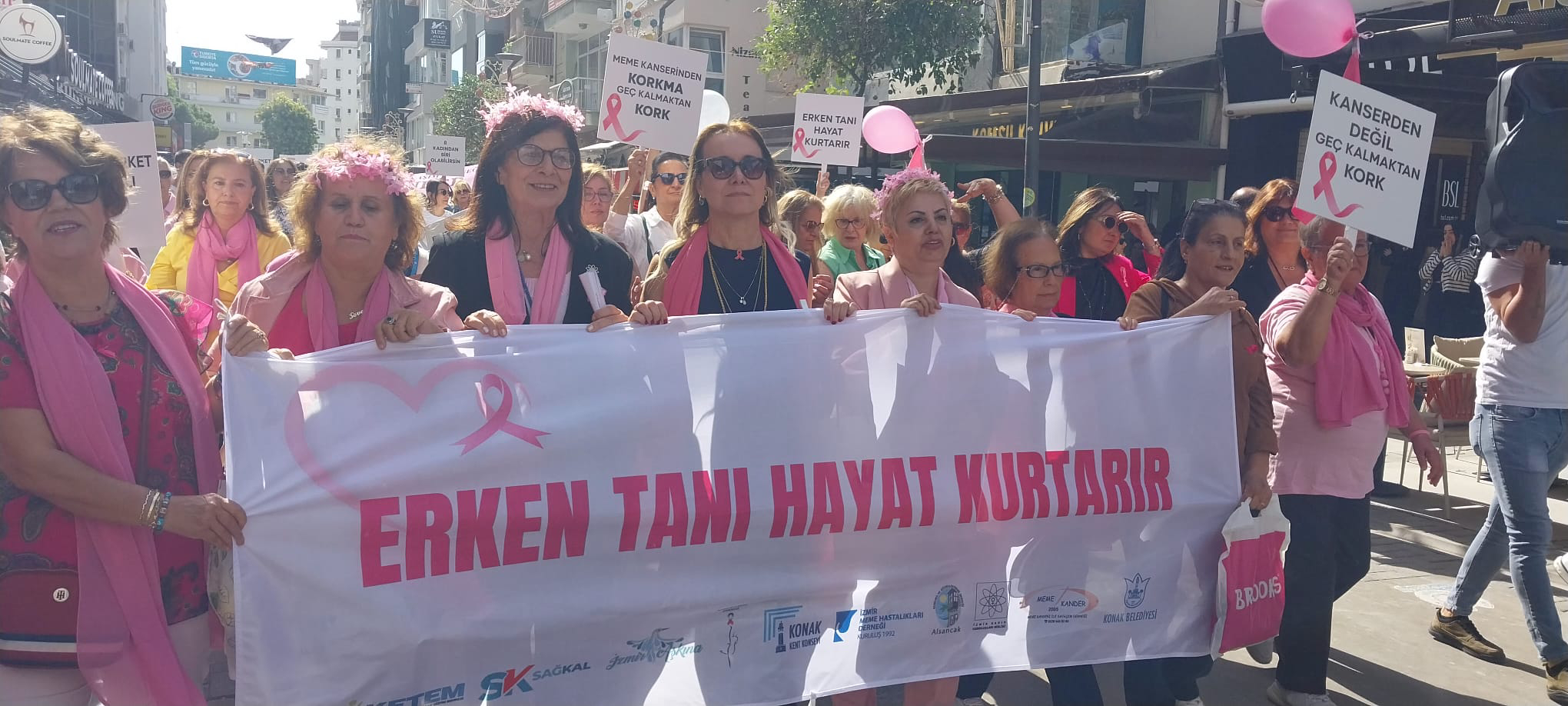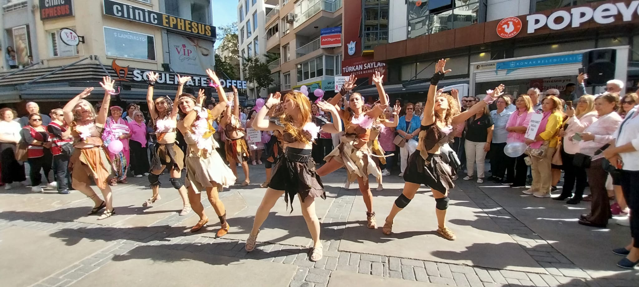 Konak Belediye Başkanı Nilüfer Çınarlı Mutlu, Konak Kent Konseyi üyeleri ve kadın derneklerinin büyük ilgi gösterdiği etkinlikte havaya pembe balonlar bırakıldı. Dans gösterileriyle de renklenen etkinlite erken teşhisin önemine dikkat çekildi.