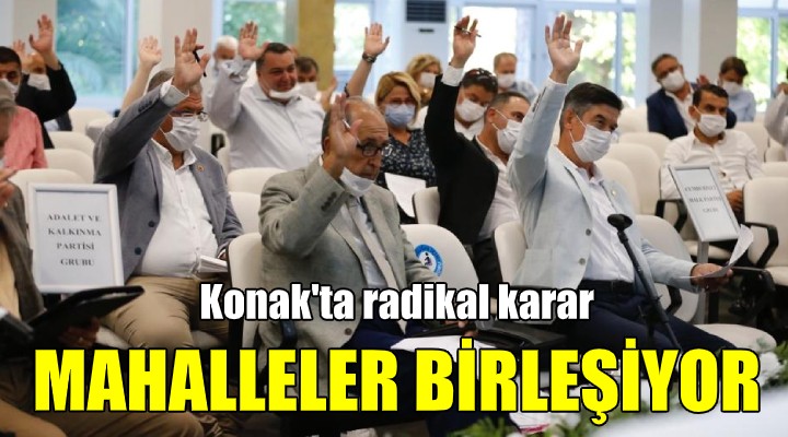 Konak Belediye Meclisinde, uzun süredir birleştirilmesi konuşulan nüfusu 300’ün altında kalan 20 mahallenin birleştirilmesine yönelik komisyon raporu da görüşüldü. Alınan karara göre Akdeniz, Bozkurt, Çınarlı, Fevzipaşa, Güneş, Güzelyurt, Hurşidiye, Kahraman Mescit, Kestelli, Konak, Kurtuluş, Odunkapı, Oğuzlar, Sümer, Nedim Tuğaltay, Vezirağa, Yenigün, Uğur ve Tan Mahalleleri yapılacak çalışma sonrası birleştirilecek. Ayrıca 4 mahallenin de kentsel dönüşüm kapsamında isimleri değişecek. Mahallelerin 2024 yılına kadar mevcut haliyle kalacağını ve muhtarlarının da görev başında olacağını belirten Konak Belediye Başkanı Abdül Batur, konuyla ilgili yaptığı açıklamada şunları söyledi:
