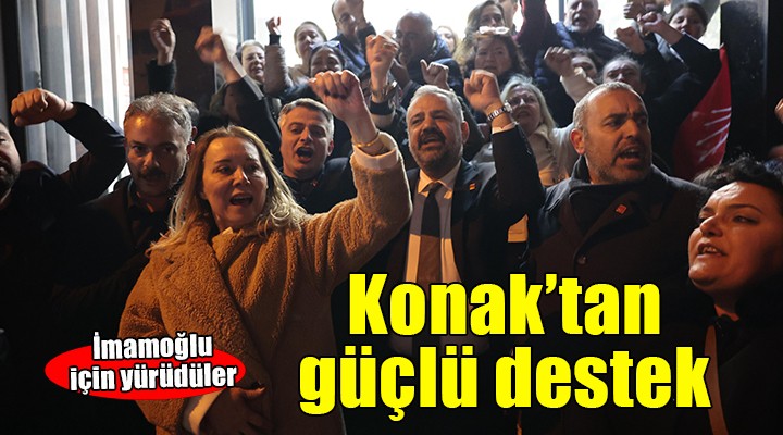 CHP Konak İlçe Başkanlığı, Türkiye Belediyeler Birliği (TBB) ve İstanbul Büyükşehir Belediye Başkanı Ekrem İmamoğlu ve 105 kişinin gözaltına alınmasının ardından ortak açıklama yaptı. Tüm il ve ilçelerde eş zamanlı düzenlenen açıklamaya, Konak Belediye Başkanı Nilüfer Çınarlı Mutlu’nun yanı sıra ilçe gençlik ve kadın kolları üyeleri ile çok sayıda vatandaş katıldı. İlçe Başkanlığı’ndaki basın açıklamasının ardından Alsancak’taki CHP İzmir İl Başkanlığı’na yürüyüş gerçekleştirildi. Güzergah boyunca korteje, evlerindeki vatandaşlar da balkonlarından ıslık ve alkışlarla destek verdi.
