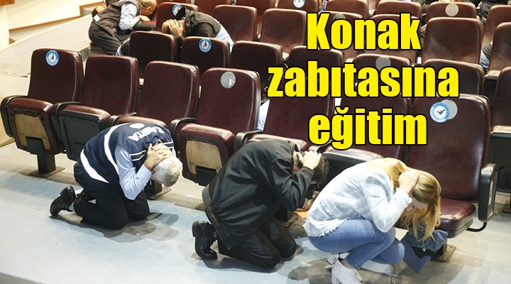 Konak Belediyesi Zabıta Müdürlüğünde görevli zabıta memurlarının katıldığı eğitimde, deprem anında ve deprem sonrasında yapılması gerekenlerle ilgili sunum yapıldı. 128 zabıta memurunun katıldığı eğitim kapsamında deprem tahliye tatbikatı gerçekleştirildi.