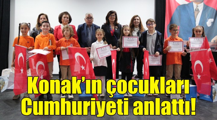 İlçe sınırları içerisindeki okullarda eğitim gören 250 öğrencinin katıldığı yarışmada jüri üyeleri dereceye girecek kompozisyonları seçmekte zorlandı. Tüm eserleri titizlikle değerlendiren jüri üyeleri, birincilik, ikincilik ve üçüncülük ödüllerinin yanı sıra bir kişiyi Özendirme Ödülü’ne, altı kişiyi de Finalist Ödülü’ne layık gördü. Konaklı çocukların Cumhuriyet’i kaleme aldığı kompozisyon yarışmasında ilk üçe Müdafaa-i Hukuk İlköğretim Okulu öğrencileri girdi. ‘Hayal’ başlıklı kompozisyonuyla Aysu Balat birinci olurken, Kerem Daldal ‘Ben Cumhuriyet Çocuğuyum’ başlıklı kompozisyonuyla ikinci, Burak Sezgin ‘Cumhuriyet’ başlıklı kompozisyonuyla üçüncü oldu. Meliha Doğan Akat İlköğretim Okulu’ndan Işılay Oralgil ise ‘Atatürk Çocukları’ başlıklı kompozisyonuyla Özendirme Ödülü’ne layık görüldü. Yarışmada dereceye giren öğrencilere hediye çekinin yanı sıra kitap da armağan edildi.