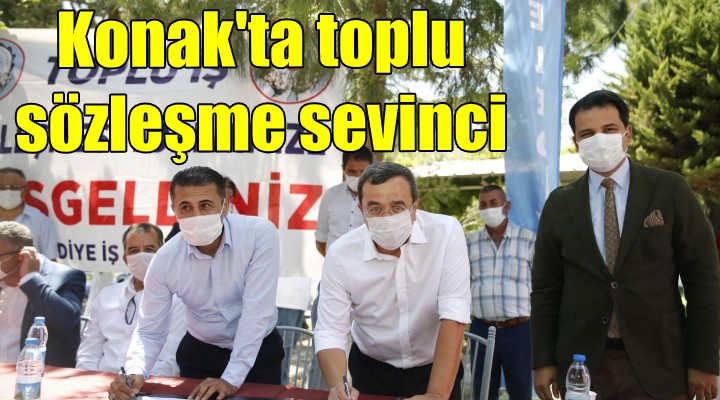 Konak Belediyesi ile Belediye-İş (Türkiye Belediyeler ve Genel Hizmetler İşçileri Sendikası) arasında yapılan toplu iş sözleşmesine imzalar düzenlenen törenle atıldı. Belediyenin Ulaşım Hizmetleri Müdürlüğünde gerçekleşen törene Konak Belediye Başkanı Abdül Batur, CHP Konak İlçe Başkanı Çağrı Gruşçu, Belediye-İş Sendikası İzmir 4 No’lu Şube Başkanı Ayhan Doğan, Tüm Yerel-Sen Genel Merkez Denetleme Kurulu Üyesi Mustafa Özkeskin, Tüm Yerel-Sen İzmir 2 No’lu Şube Başkanı Özgür Işık, belediye meclis üyeleri, belediye bürokratları ve işçiler katıldı. Bayram havasında geçen törende yüzde 14’lük maaş zammına imza atıldı.