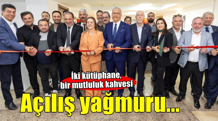Açılış kurdelelerinin hep birlikte kesilmesinin ardından konuklarla kütüphaneleri gezen Başkan Mutlu, Mutluluk Kahvesi’nin yeni şubesinde de kısa bir mola verdi.