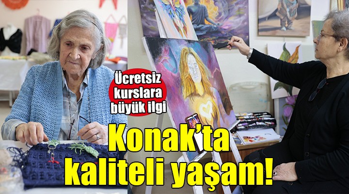 Konak Belediyesi Ziya Zişan Saadet Aytulun Kardeşler İleri Yaş Sağlıklı Yaşam Merkezi, 20’nin üstünde kursun yer aldığı ders programı ve 650’ye yakın ileri yaşta kursiyeriyle fark yaratıyor. Özellikle emeklilerin yoğun ilgi gösterdiği merkez, üretim ve sanata ev sahipliği yapmasının yanı sıra ileri yaştaki Konaklıların sosyalleşmesinde de imkan tanıyor. Tamamen ücretsiz olan kurslara devam eden ileri yaş kursiyerleri kendilerini geliştiriyor, boş zamanlarını verimli kılıyor, yeni arkadaşlar edilerek sosyal hayatlarını zenginleştiriyor. Merkezdeki yağlı boya, kara kalem, pastel boya, sır altı çini uygulama, çini işlemeciliği, alüminyum kabartma, bilgisayar işletmenliği, akıllı telefon, şiş örücülüğü, makrome çanta yapımı, tasarım uygulama, kumaş boyama, tahta baskı, kağıt boncuk yapımı, sepet örme, geleneksel naht oygu yapımı, işaret dili, oya, seramik tasarım, heykel, elde kordon işi yapımı ve ahşap yakma kurslarına 650’ye yakın kursiyer katılıyor. Merkeze devam eden kursiyerler burada sosyalleşiyor, sağlıklı yaş almanın tadını çıkarıyor.