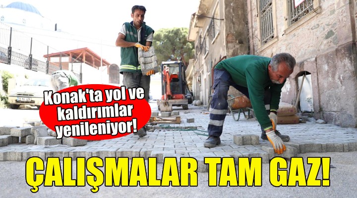 Konak Belediyesi Fen İşleri Müdürlüğü ekipleri, ilçe genelinde asfalt sermenin yanı sıra kaldırım onarım ve yenileme çalışmalarını aralıksız sürdürüyor.