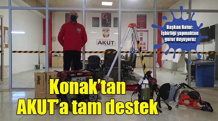 Geçtiğimiz ay Konak Belediyesi ile AKUT Arama Kurtarma Derneği İzmir Şubesi arasında atılan imzalarla hayata geçen protokolün ardından ilk adımlar atılmaya başlandı. Konak Belediye Başkanı Abdül Batur’un, protokolde yer alan “AKUT’un ihtiyaç duyduğu araç ve malzemelerin temini” maddesinin bir an önce yerine getirilmesi talimatı üzerine, AKUT Arama Kurtarma Derneği İzmir Şubesinin talep ettiği ekipman hızla yerine ulaştırıldı. Arama kurtarma faaliyetlerinde hayati önem taşıyan tripodlu kurtarma sistemi, el tipi benzinli beton kesme makinesi, benzinli jeneratör ve iki adet de temiz hava solunum seti AKUT İzmir ekibine teslim edildi.