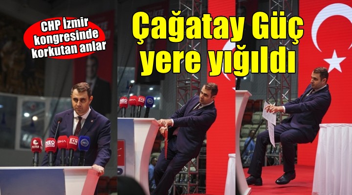Türkü ERBİL/SONKALEİZMİR-CHP İzmir İl Kongresi'nde korkutan anlar yaşandı. Tek aday olarak kongreye giren Çağatay Güç kürsüde bir anda yere yığıldı. İlk müdahaleyi partililer yaptı. Divan Kurulu Murat Emir konuyla ilgili, "Başkanımız gayet sağlıklı. Birazdan ayağa kalkacak. Tansiyon düşmesi yaşadı" ifadeleri kaydedildi. Çağatay Güç, sağlık ekiplerinin müdahalesi sonrası kürsüye geri döndü.