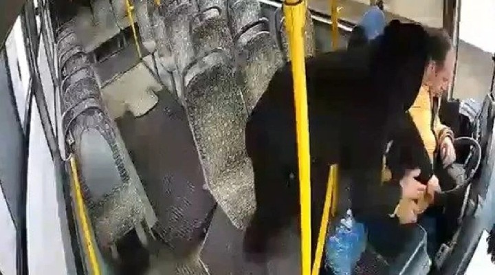 Kocaeli'nin İzmit ilçesinde, sürücüsü direksiyon başında fenalaşan özel halk otobüsünü yolcunun durdurma çabası, araç kamerasınca kaydedildi.