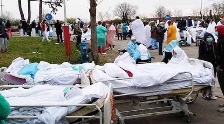 Koronavirüs nedeniyle ölenlerin sayısının 15 bin 362’ye, vaka sayısının ise 124 bin 632’ye ulaştığı İtalya’da, sağlık sisteminin çökmesi nedeniyle hastaneler sokaklara taştı, hastalar sedyeler ve sandalyelerde hastane bahçelerinde bekletiliyor. Morgların yetersizliği nedeniyle cenazelerin hastane koridorlarına yığıldığı görülürken, morglarda ise kimisi çıplak kimisi torbalarının içinde cesetler yan yana dizildi.