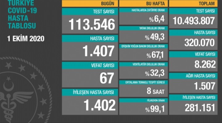 Bakan Koca ''Bugün tespit edilmiş 1.407 yeni hastamız var. Ağır hasta sayımızda düşüş devam ediyor. İyileşen hastalarımızın sayısı yeni hasta sayısına yakın. Tedbirler elimizdeki en güçlü silah. Tedbirlere birlikte uyarak bu mücadelenin galibi olalım.'' ifadelerini kullandı.