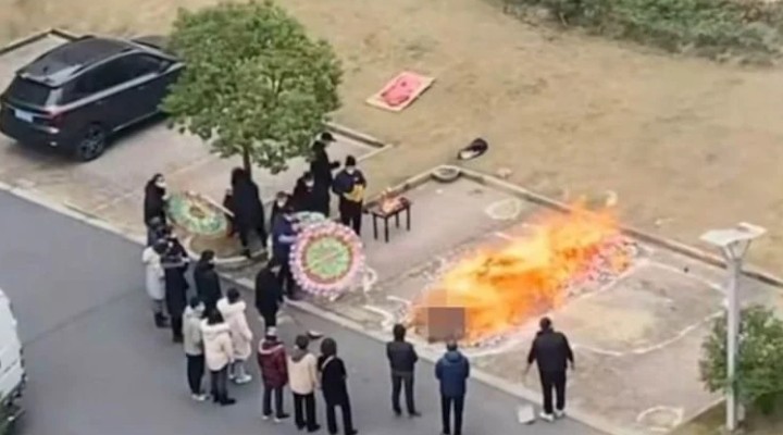Sosyal medya platformlarından paylaşılan fotoğraf ve videolarda güpegündüz sokak ortasında ya da otoparkta tören düzenleyen Çinliler Covid-19’dan yaşamını yitiren vatandaşlarını yakarak son yolculuğuna uğurladı.